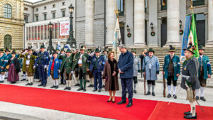 Roter Teppich für Schwedens Königin Silvia: Empfang mit Gebirgsschützen und bayerischer Tracht in München