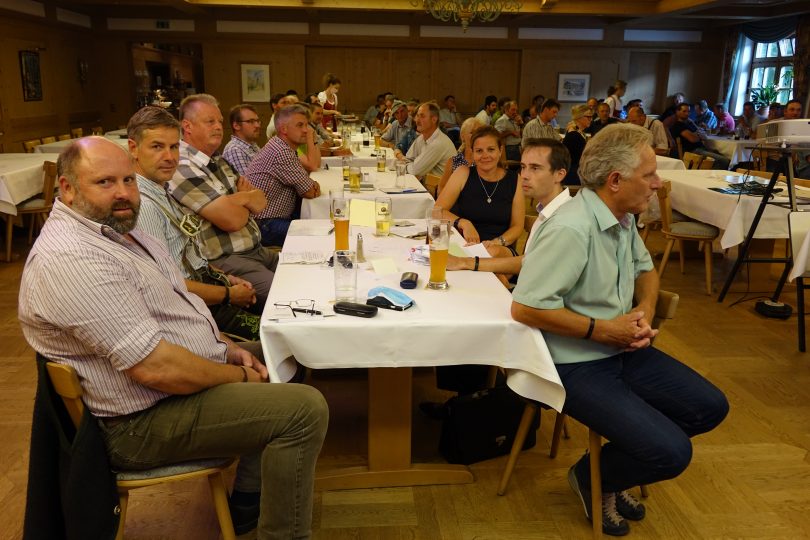 Almfachberater Alfons Osenstätter stellte das neue Herdenschutzprogramm vor, das es Landwirten einer ausgewiesenen Gebietskulisse ermöglicht, sich bestimmte Herdenschutzmaßnahmen (Grundschutz) zu 100% der Bruttokosten fördern zu lassen. Siehe auch Seite XX. Auf Grund der häufigen Wolfssichtungen in ganz Bayern- allein im Juli erfolgten xx Meldungen seitens des LfU- erweitert sich diese Kulisse nahezu täglich. Die betroffenen Gemeinden sind auf der Internetseite des LfU www.lfu.bayern.de unter dem Begriff Förderkulisse Zäune tabellarisch aufgelistet zu finden. Selbst das LfU ist derzeit nicht mehr in der Lage, die Kartenübersicht den aktuellen Geschehnissen anzupassen. Auch wenn der Fördersatz für Herdenschutzmaßnahmen mit 100% sensationell hoch ist, birgt das Programm Fallstricke, die es im Vorfeld zu beachten gilt. Sei es die Zweckbindungsfrist, die sicherstellt, dass der Zaun für diese Dauer in der geförderten Form erhalten bleiben muss, auch wenn der Wolf (hoffentlich) schon lange wieder über alle Berge oder gar behördlich entnommen ist, oder ganz einfach die Beibringung von drei Angeboten zur Antragstellung. Auch liegt aktuell noch keine offiziell anerkannte Flächeneinteilung vor, die Feldstücke als schützbar oder nicht schützbar ausweist und somit mit zumutbarem Aufwand zur Zäunung verpflichtet. Letztendlich muss hier ein jeder selbst wissen, wie und ob er seine Flächen und Tiere schützen möchte, aber klar ist: es gibt keinen wolfssicheren Zaun. Eine Beratung im Vorfeld seitens des zuständigen Sachbearbeiters am Landwirtschaftsamt wird dringend empfohlen.