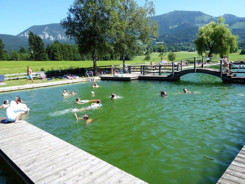 Die derzeit hohen sommerlichen Temperaturen locken die Einheimischen und Urlaubsgäste mehr an die Gewässer und etwas weniger in die Berge. An Beidem – nämlich Wasser und Berge – können sich die Besucher des gemeindlichen Samerberger Naturbades nahe der Samerberger Filze, zwischen den Hauptorten Grainbach und Törwang gelegen und mit herrlicher Aussicht auf die Hochries und Nachbarsberge erfreuen. Ein Kiosk, Bellas Moorbadstüberl, Liegewiesen und natürlich das Wasser des Bades tragen allesamt dazu bei, dass Sommer- und Sonnentage am Samerberg vorzüglich genossen werden können.