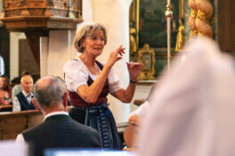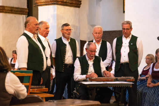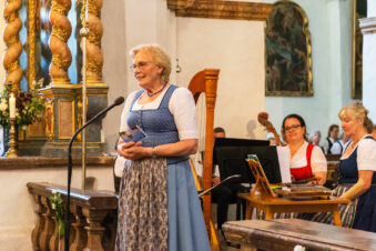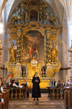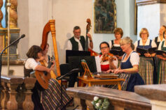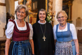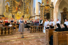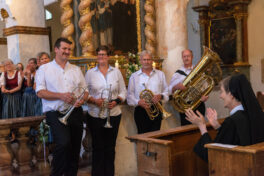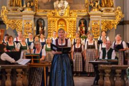 Am Schluss war man sich einig: „Es war ein Musikgenuss der besonderen Art, den die zahlreichen Mitwirkenden geboten haben“. Lob, Preis und Dank war das Motto und unter dieser Überschrift erlebten die Besucher einen bunten Strauß von Barock bis Volksmusik. Unter der bewährten Gesamtleitung von Heide Hauser sangen und spielten der gemischte Chor der Stadtsing- und Musikschule Kolbermoor, der Landfrauenchor Rosenheim, die Chormädlmusi, der Kolbermoorer Mannergsang unter Leitung von Peter Maier und das Bläserensemble Klangblech von Eduard Berger. Regina Berger streifte in ihren verbindenden Worten auf ganz besondere Weise durch die 1200-jährige Geschichte des Klosters Frauenwörth. Ein unglaubliches Gesangsvolumen rauschte durch das ehrwürdige Münster als beim Schlusslied die über 60 Künstlerinnen und Künstler gemeinsam sangen. Zu Beginn hatte die Äbtissin des Klosters, Johanna Maier, OSB bereits darauf hingewiesen, dass der gesamte Benefit dieser Veranstaltung in die Renovierung des Hauses Scholastika fließt und die Vorsitzende des Freundeskreises, Annemarie Biechl, dankte mit herzlichen Worten allen Mitwirkenden für diesen wundervollen „Inselgenuss“.