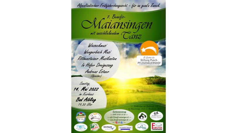 Alpenländische Volksmusik schmissig musiziert. Garniert mit guter Kost und einer frühlingshaften Atmosphäre im Kurhaus Bad Aibling. Und das alles auf einen guten Zweck gebettet. Das bietet das Benefiz-Maiansingen am 14. Mai in Bad Aibling. Neben dem Genuss für Ohren und Gaumen, wird gemeinsam Gutes getan.
