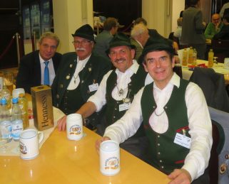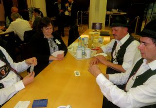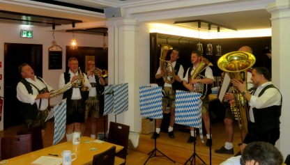 Musikalisch umrahmt wurde die Veranstaltung durch die Malgersdorfer Salettl Musik aus dem niederbayerischen Landkreis Rottal-Inn, unter der Leitung von Ludwig Brunner, die zudem mit ihrem 1. Bürgermeister Franz Josef Weber, ebenfalls einem Schafkopfexperten, angereist war. Mit einer besonderen musikalischen Einlage beglückwünschten sie dem Teilnehmer Toni Hötzelsperger, Organisator des Bühnenprogramms auf der jährlichen Internationalen Grünen Woche Berlin, zu seinem diesjährigen Geburtstag. Der Toni hat es sich nicht nehmen lassen, gerade an seinem Geburtstag zu dem Schafkopfturnier in die Bundeshauptstadt anzureisen .