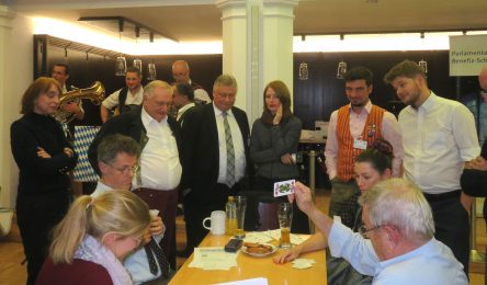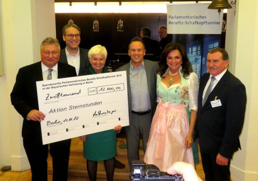 Nach zweijähriger Pause fand in diesem Jahr wieder ein Parlamentarisches-Benefiz-Schafkopfturnier in Berlin statt. Es ist schon zur Tradition geworden, dass sich Parlamentarier der Landesgruppen von CSU und der SPD in der Bayerische Vertretung Berlin, für den guten Zweck, und zwar nicht politisch, sondern im Spiel auseinandersetzen. Dies ist ein Stück bayerische Spielkultur in Berlin, zugunsten hilfsbedürftiger Menschen, so MdB Max Straubinger bei seiner Begrüßungsrede. Zusammen mit MdB Martin Burkert hat er das diesjährige Schafkopfturnier organisiert. Der Erlös ist für die Aktion Sternstunden e.V. des Bayerischen Rundfunks.