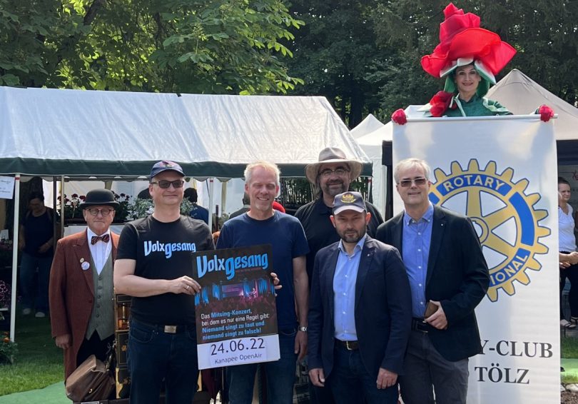 Singen macht glücklich. Gemeinsames Singen macht überglücklich! An diesem Freitag, 24. Juni ist die Gruppe VolxGesang zu Gast beim Kanapee Musik Open im idyllischen Tölzer Rosengarten. Das Mitsing-Konzert zu Gunsten der Ukrainehilfe, bei dem es nur eine Regel gibt: Niemand singt zu laut und niemand singt zu falsch! Unterstützt wird die Benefizveranstaltung vom Rotary Club Bad Tölz. „Wir sind unglaublich stolz darauf, Teil dieser Veranstaltung zu sein“, verkündet VolxGesang.