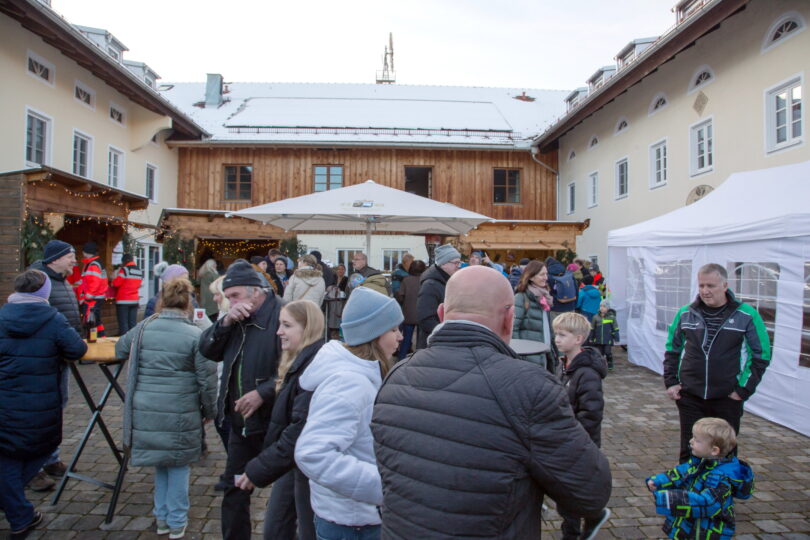 Frau Dr. Fellberg führte die Besucher in ihrem „weihnachtlichen Bärenzimmer“ in die Welt der Teddys ein, während Siegi Götze mit Geschichten „a moi lustig – a moi staad“ begeisterte. Johannes Grasser nahm sich die Zeit für Autogramme und Gespräche. Besonders erfreulich war die Anwesenheit der neuen Vorständin der Björn Schulz Stiftung, Frau Verena Stockfisch, die extra aus Berlin angereist war, um den Markt zu erleben. Den ganzen Tag über gab es ein buntes Programm mit Zaubershows, einer Modellballon-Show, und zünftig aufgespielt haben die Ettenhuber Buam. Zum Abschluss gab es eine klassische Einlage von Susanne Hehenberger an der Geige, begleitet von Peter Wesenauer am Klavier, beide von der Sinfonietta da Camera aus Salzburg. Besonders bei den Vorstellungen des Zauberers Scharini war der Raum bis auf den letzten Platz mit Kindern gefüllt, die mit leuchtenden Augen seinen magischen Kunststücken folgten. Der Imker begeisterte die Besucher mit der Herstellung von Bienenwachskerzen, während das Bastelzimmer durchgehend gut besucht war. Hier konnten Kinder wunderschöne Stofftaschen mit individuellen Drucken gestalten und Glitzer-Tattoos sorgten zusätzlich für strahlende Gesichter bei den kleinen Gästen. Die Besucher konnten sich zudem an regionalen Schmankerln erfreuen und liebevoll gestaltete