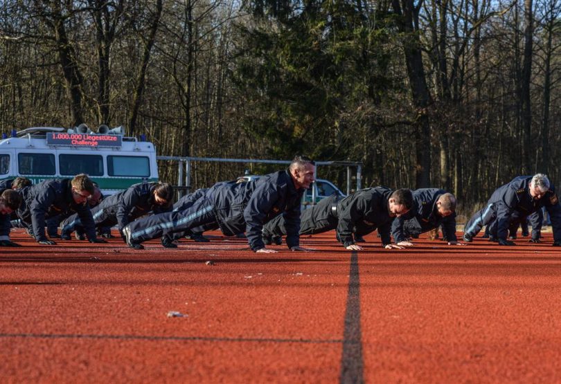 Am Mittwoch war der Sportplatz der VI. BPA mit fast 600 Beamtinnen und Beamten gefüllt, die sich während ihrer Mittagspause für die #1millionliegestützechallenge kräftig ins Zeug legten. Sascha Huber hörte im Vorfeld von diesem Event und kam persönlich nach Dachau, um die Veranstaltung zu begleiten und sich bei den Beschäftigten der VI . BPA für das gezeigte Engagement zu bedanken. Die Angehörigen der VI. BPA Dachau drückten 22 904 Liegestützen für den guten Zweck.