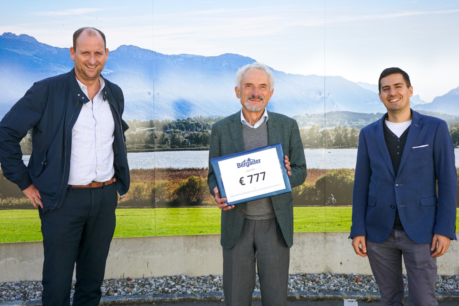 Das Foto zeigt Dr. Hermann Amann vom Verein der Freunde des Nationalparks Berchtesgaden (mitte) mit Bergader Shop- und Eventmanager Stephan Hacker (links) und Bergader Geschäftsführer Felix Kress(rechts).