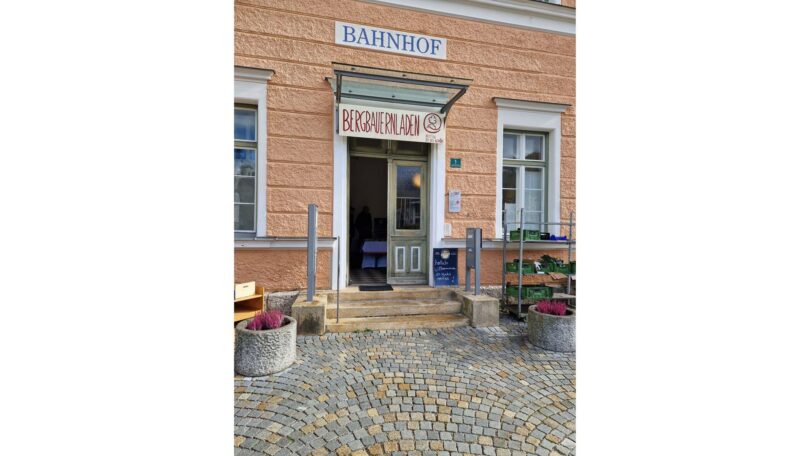Nach dem Brand des Bergbauernladens wird der Verkauf der Erzeugnisse aus dem Priental vorübergehend im Bahnhofsgebäude Aschau i. Chiemgau fortgeführt.
