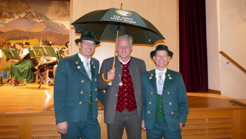 S wie Schirmherr: Die Schirmherrschaft für unser Gaufest übernimmt unser Erster Bürgermeister Bergens, Stefan Schneider. Traditionsgemäß ist der Schirmherr für das Wetter zuständig – deshalb hat er auch einen Regenschirm überreicht bekommen, den wir aber lieber als Sonnenschirm benutzen würden. Wir sagen „Vergelt’s Gott“ dafür und Stefan, du weißt ja noch, was auf dem Schirm steht, oder? 🙂