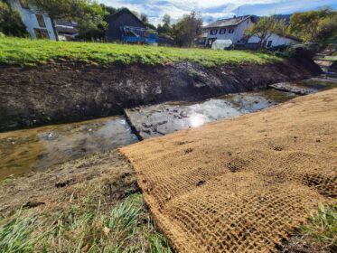 Geplant ist, die Arbeiten bis Ende des Jahres flussabwärts fortzusetzen, bis rund 150 Meter nach der Brücke an der Campingstraße. Für diesen zweiten Bauabschnitt sind erste Schritte bereits getan: Auf Höhe des Säulner Wegs liegen die Uferböschungen schon frei. Mit Holznägeln befestigte Kokosmatten schützen vor Erosion und werden bald mit Gras bewachsen sein. Und natürlich soll auch auf diesem, insgesamt rund 350 Meter langen Abschnitt des Bachs die Durchgängigkeit für Fische hergestellt werden. Im kommenden Jahr wird Strecke erneut verlängert: Die Arbeiter sanieren dann den Bergener Bach bis hinunter zum Schwimmbad, also auf einer Länge von etwa 300 Metern. In Summe wird der Wildbach auf einer Länge von rund 750 Metern saniert und damit auch die Durchgängigkeit für Fische erreicht.