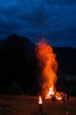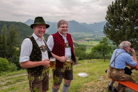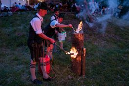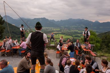 Hoch und schön gelegen über dem Inntal befindet sich auf dem Samerberg die Dandlberg-Alm. Diese war ausgesuchter Ort für eine besondere Veranstaltung der Goaßlschnalzer vom Trachtenverein „Almenrausch“ Rossholzen. „Guad drauf“ waren dabei nicht nur der Titel der frisch aufspielenden Musikanten, sondern auch die „Baschtler Schnalzer“ selbst, die bis zum Einbruch der Dunkelheit und dem dann beginnenden Abbrennen eines großen Hohlzstoßes ihre Auftritte hatten. Für passende Bewirtung auf der Dandlberg-Alm war ebenfalls gesorgt. Die nächsten größeren Aufgaben für die Rossholzener Goaßlschnalzer und ihrem Trachtenverein stehen im Zusammenhang mit dem 120jährigen Gründungsfest, das im Festzelt vom Dienstag, 14. August bis Montag, 20. August gefeiert wird.