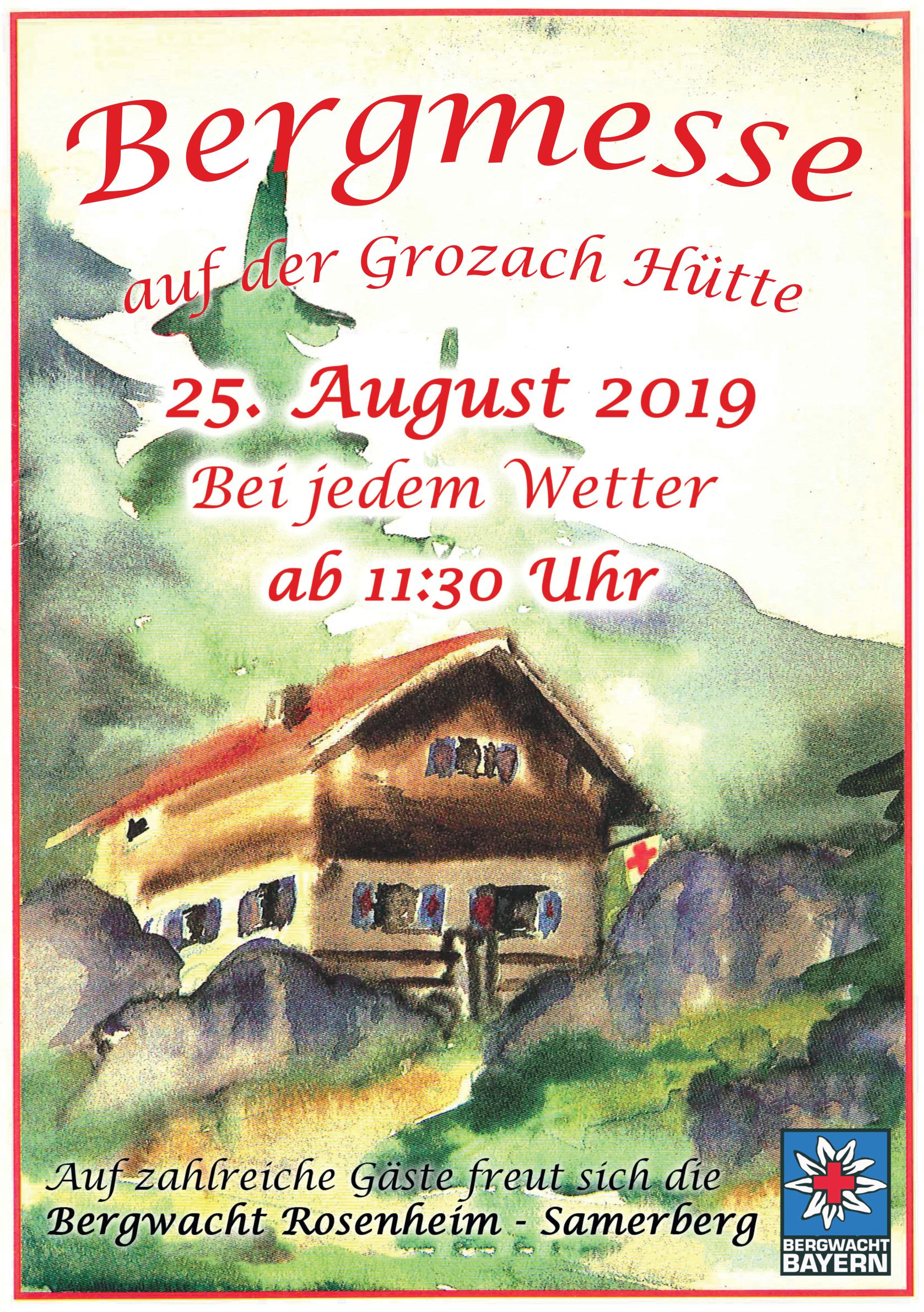 Am Sonntag, 25. August lädt die Bergwacht Rosenheim-Samerberg zur traditionellen Bergmesse auf der Grozach-Hütte im Hochriesgebiet ein. Für das leibliche Wohl ist gesorgt.
