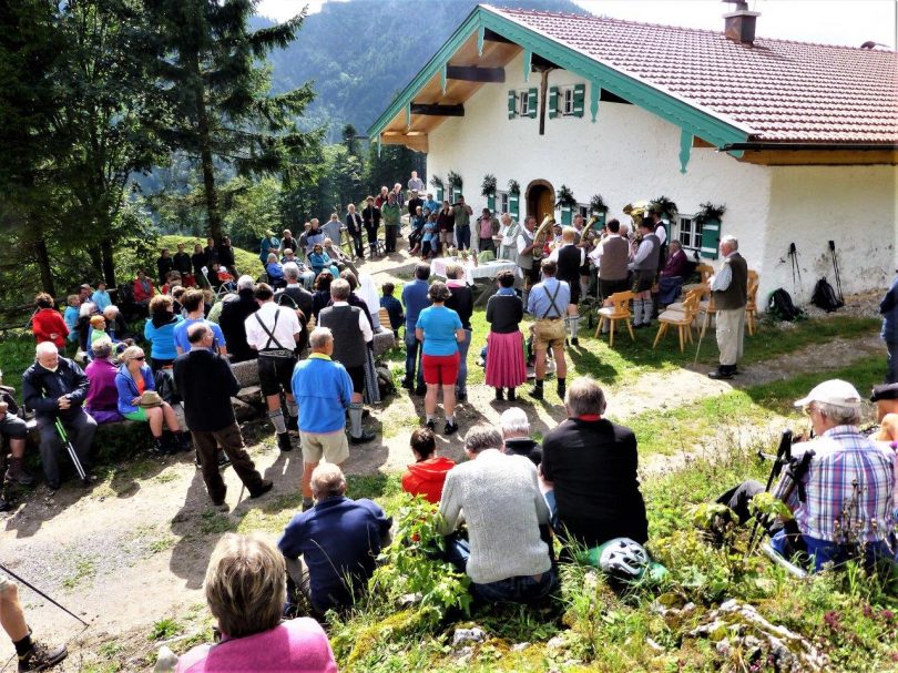 Einer guten Tradition folgend fand am dritten Sonntag im August wieder die Bergmesse auf der Wirts- bzw. Genossenschaftsalm auf dem Samerberg statt. Viele Gläubige versammelten sich um die vor kurzem teilrenovierte Alm, um gerade nach den jüngsten Terrorakten in Spanien und Unwettern im eigenen Land für Frieden und Sicherheit zu beten. Zelebrant war Prälat Lothar Waldmüller aus Prien, die musikalische Gestaltung übernahmen Blasmusikanten aus Nussdorf am Inn. Aus den Reihen der Almgenossen und ihrer Familien wurde abschließend für das leibliche Wohl gesorgt.