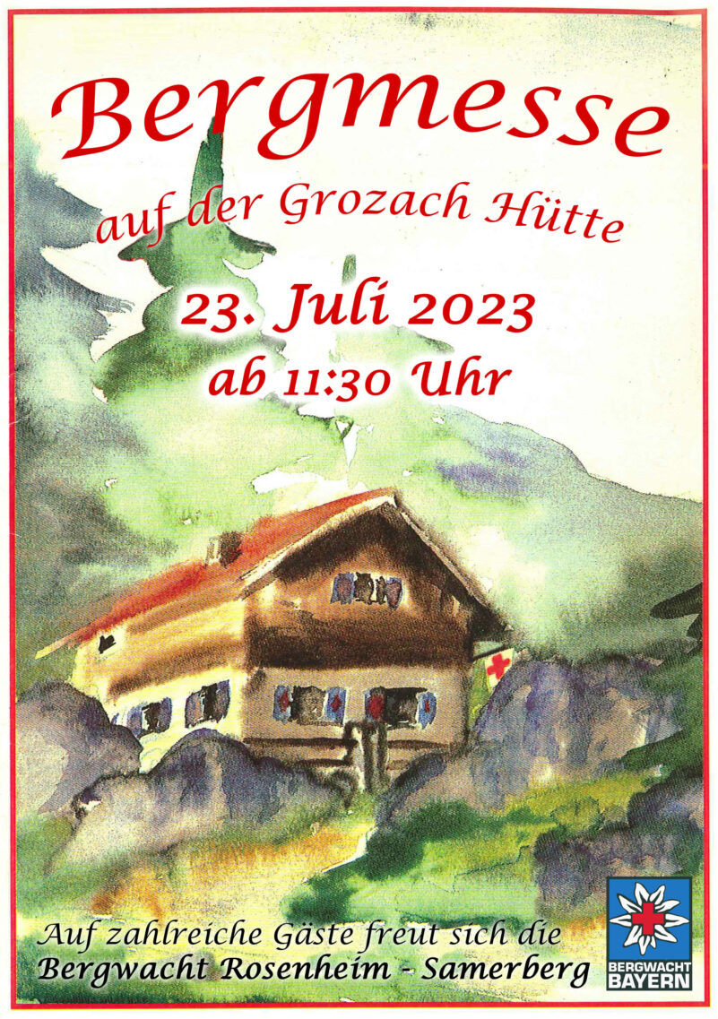 Eine Bergmesse der Bergwacht Rosenheim – Samerberg findet am Sonntag 23. Juli ab 11:30 Uhr auf der Grozach-Hütte.
