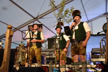 Bürgermeister Josef Loferer fand es bärig, dass die beiden Bergsteigerdörfer das Fest gemeinsam begehen konnten und Bürgermeister Simon Frank sah in dem geschenkten Apfelbaum ein Symbol der Verwurzelung und des Werdens für die Gemeinsamkeit. Zusammen wollen sie einen besonders schönen Platz für den Baum suchen und bei „einer halben Bier“ gemeinsam einpflanzen. Der Abend ging fröhlich musikalisch weiter mit den „5è hamma“ und später mit der Gruppe „Oberkrainer Power“. Alle drei Gruppen animierten das Publikum zum Tanz auf der Bühne, was von „Groß und Klein“ gut angenommen wurde. Die Stimmung war bestens und ausgelassen.