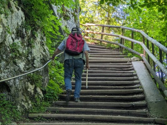 Dann beginnt der Abstieg, und der hat es auch wieder in sich – 365 Stufen, zählt Christoph. Zufrieden und leicht erschöpft erreichen wir schließlich wieder den Parkplatz.