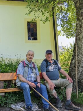 Wir starten früh am Morgen beim Parkplatz am Kaiseraufstieg in Eichelwang – das Wetter macht seinem Namen alle Ehre: Kaiserwetter! Schon der Einstieg hat es in sich. Über unzählige Stufen führt der Weg bergauf, begleitet von immer wieder beeindruckenden Ausblicken, wie dem Blick auf Kufstein und die majestätische Festung Kufstein im Tal. Zwei entgegenkommende Frauen berichten uns, dass sie vom Stripsenjochhaus herkommen. Wir bewundern sie, denn sie müssen früh aufgestanden sein, für die Tour braucht man schon gute 5 Stunden und es ist ja noch nicht einmal Mittag. Nach dem kräftezehrenden Aufstieg auf der langen Treppe wird das Gelände merklich flacher. Bald erreichen wir den Veitenhof und kurz darauf den Pfandlhof, mitten im Naturschutzgebiet Kaisertal. Hinter dem Pfandlhof zweigt ein Weg ab – wir halten uns links und steigen leicht an zur Antoniuskapelle, einem stillen Ort mit atemberaubender Sicht auf die schroffen Felsgipfel des Wilden Kaisers. Hier machen wir Rast auf einer Bank vor der Kapelle und genießen das imposante Panorama.