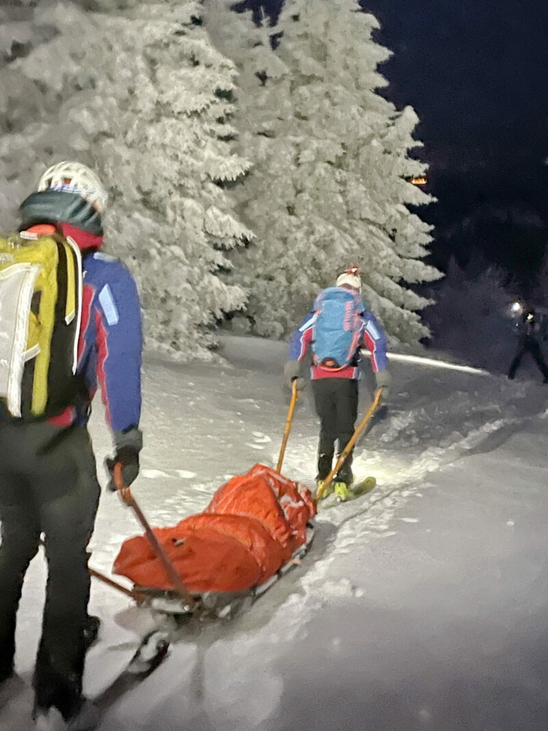 Zum Unfallzeitpunkt war der Hochriesgipfel wolkenverhangen und nur zu Fuß zu erreichen. So wurde von den Einsatzkräften ein aufwändiger Abtransport mit dem Akja vorbereitet. Parallel versuchte der Rettungshubschrauber Christoph 1 zum Einsatzort zu gelangen. Dies war aufgrund der schlechten Sichtverhältnisse nicht möglich. Die beiden Geländefahrzeuge brachten die Einsatzkräfte durch den hohen Neuschnee zum Riesenplateau. Der weitere Weg bis zur Hochrieshütte musste auf Skiern zurückgelegt werden. Nach der notärztlichen Versorgung in der Hütte wurde der Patient in den Akja eingepackt und bis zum Riesenplateau transportiert. Der restliche Weg ins Tal konnte danach mit den Geländefahrzeugen zurückgelegt werden. Am Wanderparkplatz Lederstube wurde der Patient an den Rettungsdienst übergeben. Insgesamt waren 18 Einsatzkräfte der Bergwachten Rosenheim-Samerberg und Sachrang-Aschau über viereinhalb Stunden im Einsatz.