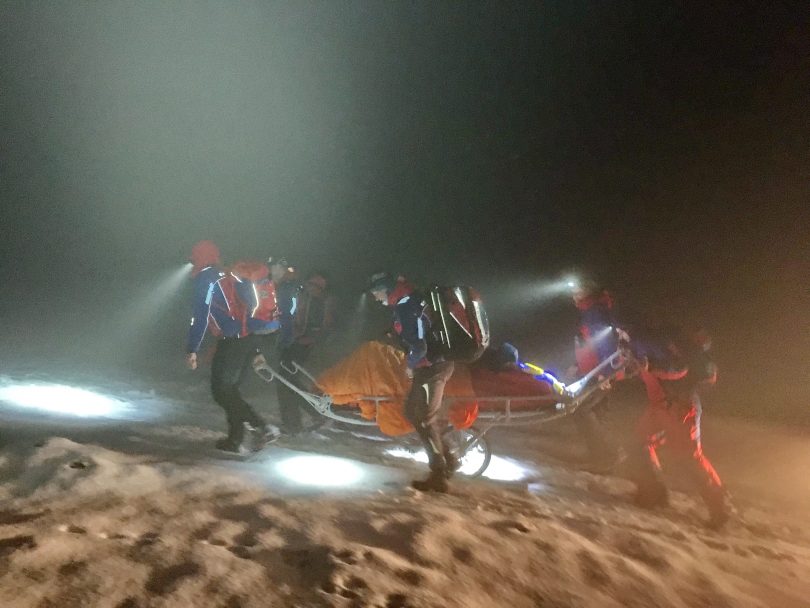 Gegen 01:30 Uhr in der Nacht wurde die Bergrettungswache Samerberg alarmiert. Eine Person mit einer akuten Erkrankung befand sich zu diesem Zeitpunkt im Hochries-Gipfelhaus. Sofort machten sich rund zehn Einsatzkräfte und ein Bergwachtnotarzt mit dem Fahrzeug auf dem Weg zum Riesenplateau. Von dort aus ging es mit medizinischem Equipment und einer Gebirgstrage zu Fuß auf den Gipfel der Hochries. In der Hochrieshütte wurde der 35-jährige Patient medizinisch erstversorgt und für den Abtransport vorbereitet. Bis zum Fahrzeug wurde der Patient in der Gebirgstrage transportiert. Die schlechte Sicht durch den Nebel und der starke Schneefall erschwerten den Einsatz. Ab dem Riesenplateau konnte die restliche Strecke ins Tal mit dem Rettungsfahrzeug zurückgelegt werden. Im Tal wurde der Patient dem Rettungsdienst übergeben und ins Klinikum Rosenheim gebracht werden. Um 5 Uhr früh war der Einsatz für die Bergwacht Rosenheim – Samerberg abgeschlossen.
