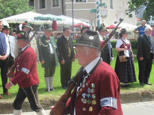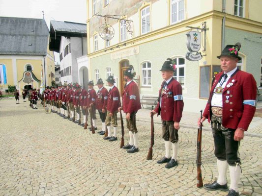 „Heimat, Brauchtum und Werte nicht nur zu pflegen und zu hegen, sondern auch zu verteidigen“ – dies haben sich die Bayerischen Gebirgsschützen auf die Fahnen geschrieben. Dies gilt auch für das Bataillon Inn-Chiemgau, das erstmals nach Beginn der Corona-Pandemie wieder in größerer Zahl zusammenkommen konnte. Ort der feierlichen Zusammenkunft war der malerische Marktplatz von Neubeuern, dessen Gebirgsschützenkompanie (GSK) das 50jährige Bestehen in Verbindung mit dem ebenfalls verschobenen 40. Geburtstag des Bataillons nachholte.