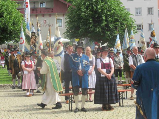 Die musikalische Gestaltung des Gottesdienstes übernahm die Musikkapelle Neubeuern mit ihrem Dirigenten Bernd Eutermoser sowie der Kirchenchor Neubeuern unter der Leitung von Pia Hausner. Aufgrund der Corona-Auflagen war die Teilnahme in voller Kompaniestärke nur der Festkompanie Neubeuern möglich, die Samerberger Patenkompanie war auf 20 Mann reduziert und die weiteren Kompanien des Bataillons Inn-Chiemgau sowie von Bayrischzell waren auf kleine Fahnen-Abordnungen beschränkt. Unter den Ehrengästen befanden sich Schatzmeister Günter Reichelt und Schützenmeister Harald Schrangl vom Bund der Bayerischen Gebirgsschützen, die beiden Ehren-Gauhauptmänner Anton Greimel und Fritz Kelzenberg sowie Bezirksrat und Bayernbund-Landesvorsitzender Sebastian Friesinger. Wie Landesvorsitzender Martin Haberfellner abschließend bekanntgab, ist der Patronatstag der Bayerischen Gebirgsschützen für Sonntag, 8. Mai 2022 in Aschau i. Chiemgau geplant.