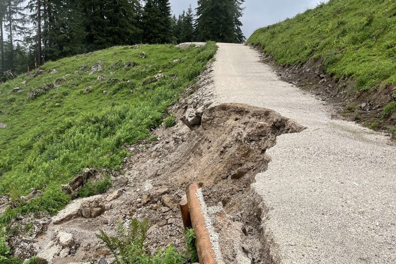 Wasserschäden, Rinnen und kleinere Vermurungen sorgen im Bereich Wimbachtal, Klausbachtal, Schneibsteinweg, Gotzenstrasse, Königsweg (Foto), Saugasse, Sigeretplatte, Oberlahnersteig, Sagerecksteig sowie am Landtalsteig für kleinere Behinderungen, diese Bereiche können aber begangen werden. Die Übergänge vom Kärlingerhaus über das Halsköpfl zur Wasseralm, weiter über das Landtal zur Gotzenalm und weiter über den unteren Hirschenlauf sind begehbar, auf kurzen Abschnitten ist besondere Aufmerksamkeit erforderlich. In den kommenden Tagen und Wochen werden die Nationalparkmitarbeiter weiterhin intensiv an der Beseitigung der Unwetterschäden arbeiten. Mit den beiden Maßnahmen „gezielte Sperrungen“ und „zügige Instandsetzungen“ versucht die Nationalparkverwaltung zeitnah einen Ausgleich zwischen dem Erholungsbedürfnis und der Sicherheit der Gäste zu erreichen. Für alle Wege gilt bis auf Weiteres: Aufgrund der Auswirklungen der Unwetter auf die allgemeine Wegebeschaffenheit werden Besucher um besondere Vorsicht gebeten. Die Nationalparkverwaltung informiert auf der Webseite unter www.nationalpark-berchtesgaden.bayern.de fortwährend über die aktuelle Situation.