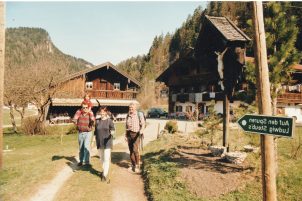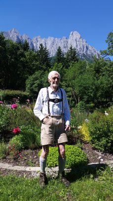 Bruno Erath zum Beispiel, der beim Bayerischen Rundfunk das erste regelmäßige Bergsteigerprogramm[2]  aufgebaut hat und seinen schweren Tonbandkoffer trotz Knieschadens bis in Gipfelhöhe schleppte. Oder der drahtige, nach einem schuldlosen Autounfall verstorbene Gerd Kreyssig, der in sonnigen Höhen so gern die Bergvagabunden besang; das von ihm eingeführte „Berg-Journal“ der Süddeutschen Zeitung war lange mein „Hauptkunde“.  Die Bergliteraten Dr. Eckart Rübesamen und Wilfried Schwedler regten mich an, alpinen Spuren berühmter Dichter, Maler und Fürsten nachzugehen und als Touren zu beschreiben. Hans Steinbichler, der trotz Wampen mit seinem Jagdhund meis tunserer Meute vorauseilte, mobilisierte mich und viele andere durch aufwühlende Fotos und Aktionen („Rettet den Geigelstein“) sehr früh für den den kämpferischen Umweltschutz im bedrohten Bergland[3] ; ein heimtückisches Leiden streckte ihn und seine Frau nieder. Beim Isarflimmern erzählte mir mein Lieblingsindianer Willy Michl über seine wilde Zeit als aufsässiger Gebirgsjäger in Mittenwald und als trinkfreudiger Pächter der Höllltalangerhütte unter der  Zugspitze.