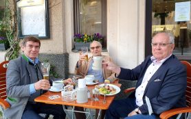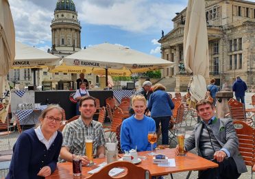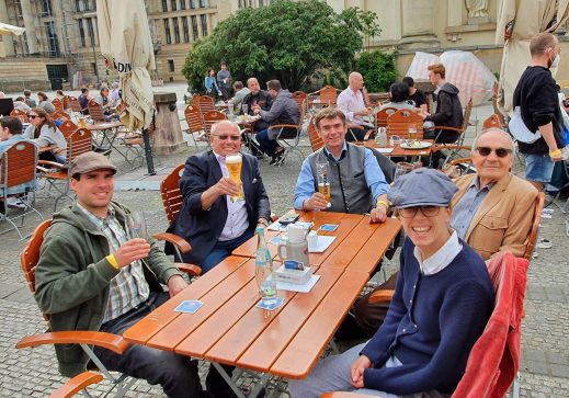 Wegen dem durchwachsenen Wetter war an den ersten Tagen der Andrang noch nicht so groß. Am Pfingstmontag zeigte sich jedoch der Wettergott gnädig. Unter weiß-blauem Himmel und bei angenehmen Temperaturen blieb vor dem Französischen Dom kein Tisch mehr frei. Nach dem Schnelltest mit „negativem Ergebnis“, im hausinternen Coronapoint, stand dem langersehnten Biergartenerlebnis mit Erdinger-Biergenuss und bayerischen Schmankerln nichts mehr im Wege. Somit ließen es sich einige Mitglieder vom „Erdinger Stammtisch Berlin“, vom „TourismusDialog Berlin“ und vom „Verein der Bayern in Berlin“ nicht nehmen, erstmals in 2021 zu einem gemütlichen gemeinsamen Frühschoppen zusammen zu kommen. Mit Weißwurst, Brezn und Kristallweizen genoss man die wiedererlangte „Freiheit“ in den Biergärten der Bundeshauptstadt. Nach der Öffnung der Außengastronomie sind in Berlin ab dem 4. und dem 18. Juni weitere Lockerungsstufen geplant. Der Geschäftsführer der Erdinger Privatbrauerei Niederlassung in der Hauptstadt, Jupp Miebach, dankt seinen Gästen recht herzlich für die Treue in der Krise und hofft nun auf eine baldige Rückkehr zur Normalität in der Gastronomie.