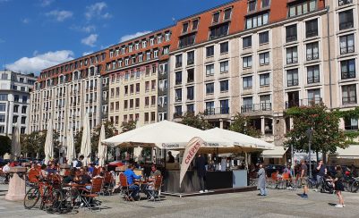 Nach 7 Monaten Schließzeit öffneten zu Pfingsten in Berlin wieder die Biergärten. Mit Impfnachweis oder Corona-Test dürfen die Berliner seit Freitag wieder im Außenbereich bewirtet werden. Mit dem Corona-Schnelltest-Center im eigenen Haus war Erdinger am Gendarmenmarkt schon seit Anfang Mai bestens darauf vorbereitet. Zum Schutz der Gäste und Mitarbeiter werden alle Auflagen zum Thema Abstand und Hygiene auf das Genaueste eingehalten.