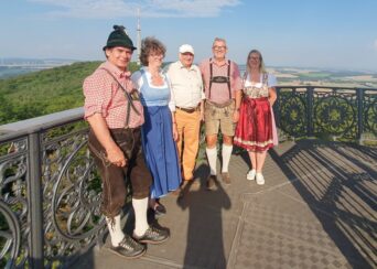 Der zweite Tournee-Tag begann mit einem Konzert auf dem Marktplatz von Waltersdorf, einem Erholungsort am Fuße der Lausche, im Naturpark Zittauer Gebirge. Vor der historischen Schankwirtschaft „Niederkretscham“ mit einem Naturpark-Haus, in dem anhand einer Erlebnisausstellung der „Naturpark Zittauer Gebirge“ den Gästen näher gebracht wird, waren auch hier die alpinen Klänge eine Premiere. Ebenso auf der Terrasse der dortigen Hubertusbaude, mit einem atemberaubenden Blick über die Oberlausitz. Im Anschluss führte der Weg weiter nach Ebersbach. Es galt ein alpines Ständchen für die Tante der Alphornspielerin Hilla, der 98-jährige Tante Erika Pietsch, darzubieten, um deren Genesung zu begünstigen. Im Anschluss dann ein geselliges Zusammensein im Altersheim in Neusalza mit alpinen Klängen und volkstümlichen Liedern auf dem Akkordeon. Höhepunkt war dabei das “Oberlausitzlied”, die offizielle Hymne der Region. Zum Abschluss des Tages dann nochmal ein Abstecher nach Tschechien, ins Restaurant Stary Mlyn in Ro’zany. Nach alpinen Klängen bei Sonnenuntergang, im Vorgarten des Restaurants, ging es zurück zum Kurort Jonsdorf. Dort hat sich zum Abschluss des ereignisreichen Tages der Sternwartenleiter Frithjof Helle bereiterklärt, dem Ensemble eine sachkundige Führung an der Volkssternwarte-Jonsdorf zu geben.