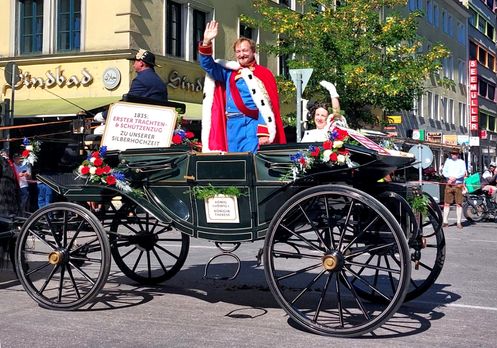 Eine Gruppe Berliner Trachtler, vom Verein der Bayern in Berlin, machte sich dieses Jahr mal wieder auf nach München, zum Oktoberfest. Bei traumhaftem Wetter erlebten sie zur Eröffnung den traditionellen Trachten- und Schützenzug. Nahezu 9.000 Trachtler nahmen in 60 Gruppen daran teil, begleitet von zünftiger Blasmusik. Allen voran das „Münchner Kindl“. In einer eigenen Festkutsche grüßte der Ministerpräsident Dr. Markus Söder mit Ehefrau Karin Baumüller-Söder, das Publikum. Auch der Münchner Oberbürgermeister, Dieter Reiter, nahm gemeinsam mit seiner Ehefrau Petra Reiter an dem Umzug teil, begleitet von der Wiesn-Stadträtin Anja Berger. In einer prachtvoll geschmückten Kutsche zeigte sich auch das berühmte Königspaar, König Ludwig I. und Königin Therese von Bayern.