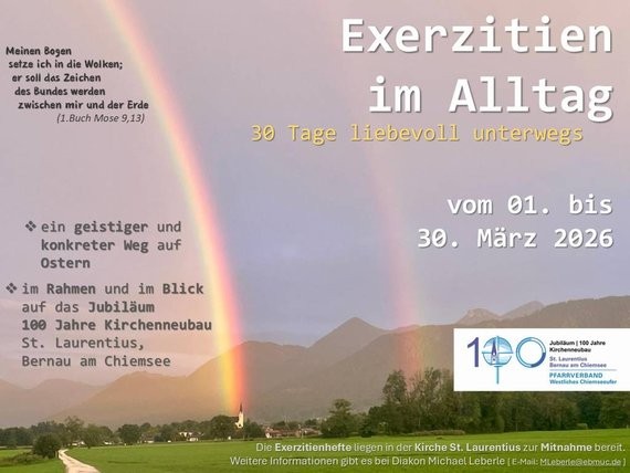 Im Jahren des Jubiläums laden die katholische Pfarrgemeinde St. Laurentius und Diakon Michael Leberle herzlich zu Exerzitien im Alltag unter dem Thema „30 Tage liebevoll unterwegs“ ein.
