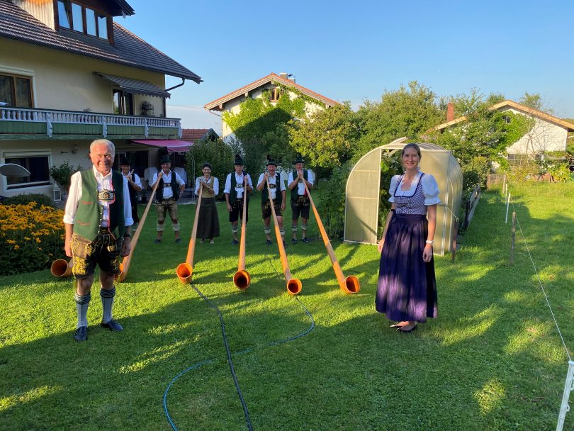 Coronabedingt in gewissen zeitlichen Abständen, aber stets herzlich und freudig fanden sich im Hause von Bernaus Alt-Bürgermeister Lorenz Steindlmüller zahlreiche Gratulanten zu dessen 80. Geburtstag ein. Zu den Personen und Delegationen, die gratulierten, gehörten unter anderem Vertreter der Bernauer Ortsvereine, Bürgermeister Bernd Feßler vom Bayerischen Gemeindetag, Altbürgermeister Klaus Daiber sowie dessen Tochter und nunmehrige Bernauer Bürgermeisterin Irene Biebl-Daiber. Sie wünschte dem rüstigen Lenz Steindlmüller namens des gesamten Gemeinderates und der Bevölkerung weiterhin alles Gute und eine gute Gesundheit. Die Hafenstoana Alphornbläsern aus Bernau spielten ihrerseits in freundschaftlicher Verbundenheit ein Ständchen.