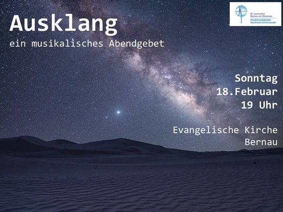 Am Sonntag, 18. Februar lädt die Katholische Pfarrgemeinde Bernau wieder um 19 Uhr zum “Ausklang” – einem musikalischen Abendgebet ein.