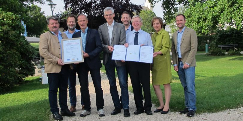 Schon einige Gemeinden aus den LEADER-Regionen Chiemgauer Alpen und Chiemgauer-Seenplatte haben einen Antrag zur Förderung der Maßnahmen in ihren Gemeinden gestellt. Besonders schnell war hier die Gemeinde Grabenstätt. Daher konnte bei diesem Übergabetermin auch Marion Wagner von der Tourist-Information Grabenstätt die Zusage für LEADER-Fördermittel in Empfang nehmen. Die Gemeinde Grabenstätt startet nun mit einem Blick durch ein Fenster in die Vergangenheit auf einen römischen Gutshof nahe Erlstätt, einer Station an der Kirche in Grabenstätt zum eingemauerten Römerstein und einem neuen Angebot für Kinder zu römischen Mosaiken im Römischen Museum Grabenstätt.