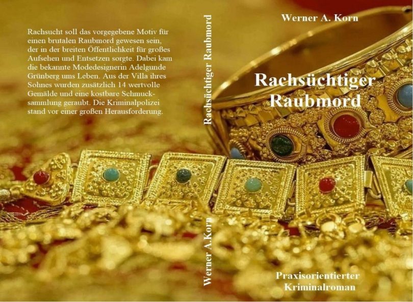 Mit seinem 35. Buch veröffentlichte der Chiemgauer Autor Werner A. Korn seinen neuen praxisorientierten, 196-seitigen Kriminalroman „Rachsüchtiger Raubmord“ vor. Von wahren Vorkommnissen inspiriert beschreibt der ehemalige Kriminalbeamte den Raubmord an der stadtbekannten Adelgunde Grünberg, der langjährigen Chefdesignerin in der Berliner Fabrik für Damenoberbekleidung ihres Mannes. Als 1944 eine zunehmenden Bombardierung der damaligen Reichshauptstadt erfolgte brachten sie ihren Sohn Günter in dem Kinderheim „Bonnschlössl“ in Bernau am Chiemsee unter. Vor Ort besuchte er die Volksschule. Nach zwei Jahren holten sie ihn wieder nach Berlin zurück. Er machte dort das Abitur, studierte anschließend Betriebswirtschaft und trat in die Geschäftsleitung der Fabrik ein. Nach dem plötzlichen Tod seines Vaters übernahm Günter Grünberg die Fabrik und führte diese sehr erfolgreich weiter. Neben der Stadtvilla hatte er die Firma, wertvolle Ölgemälde aus dem 18. und 19. Jahrhundert sowie eine Sammlung antiken Goldschmucks geerbt. Seine Mutter genoss nach dem Erreichen des Rentenalters ihren Lebensabend in einem an die Villa angebauten Nebengebäude. Jahre später erhielt er während eines Urlaubs in dem bekannten Luftkurort am Chiemsee von der Berliner Kriminalpolizei die grauenvolle Mitteilung, dass seine Mutter einem brutalen Mord zum Opfer gefallen war. Zusammen mit seiner Frau fuhr er umgehend nach Berlin zurück. Die Beamten der Berliner Kripo hatten unter dem großen Druck der veröffentlichten Meinung eine umfangreichen Ermittlungsarbeit zu bewältigen. Mühsam bemühten sie sich um die Aufklärung dieses Raubmordfalles. Adelgunde Grünberg war durch zwei kräftige Schläge mit einem Brecheisen im frontalen Kopfbereich ums Leben gekommen. Die Täter hatten aus der Villa 14 exquisite Ölgemälde sowie den gesamten antiken Goldschmuck geraubt. Die Schadenshöhe musste noch gutachtlich festgelegt werden. Wird die Kripo diesen Mordfall klären?