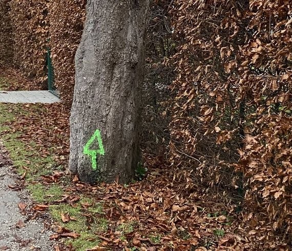 Der Baumkontrolleur der Gemeinde Bernau a. Chiemsee ist wieder unterwegs. Bäume, die auf gemeindlichen Grundstücken stehen, müssen regelmäßig kontrolliert werden, damit bei Sturm oder Unwettern keine morschen Äste herabfallen und Passanten verletzen können. Der Baumkontrolleur kennzeichnet dabei die Bäume, jedoch bedeutet ein Zeichen nicht immer gleich das Fällen eines Baumes. Ein Pfeil weist z.B. auf kaputte Äste in der Krone hin. Bevor ein Baum gefällt wird, wird übrigens immer eine zweite Meinung eingeholt.