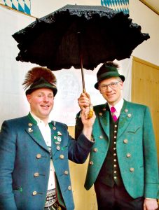 Foto: Berger – Bildunterschrift: Erster Bürgermeister Philipp Bernhofer (re.) hat von Erstem Vorstand Franz Praßberger symbolisch einen Schirm für die Übernahme der Schirmherrschaft übernommen.