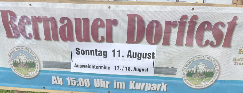 Beginn ist um 15 Uhr im idyllischen Kurpark – der geplante Ausweichtermin am 17./18. August wird wohl nicht beansprucht werden müssen. Auf geht´s zum Bernauer Dorffest mit den Trachtlern des GTEV “D´Staffestoana” Bernau.