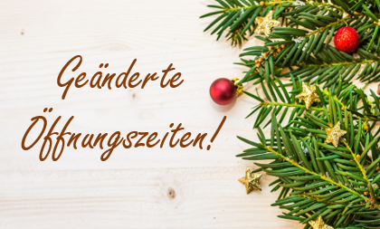 Hallenbad: 24.12. und 25.12. geschlossen; am 26.12. ist das Bad von 14:00 – 19:00 inkl. Sauna geöffnet; Am 31.12. und 01.01.2025 sind Bad und Sauna geschlossen.