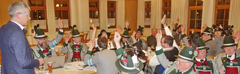 „Ihr seid immer dabei, wenn man Euch ruft und Ihr habt mit Eurem sauberen Auftreten immer wieder ein schönes Bild abgegeben und Verlässlichkeit gezeigt“, so Bürgermeister Philipp Bernhofer in seinem Grußwort und er fügte hinzu: „Wie sehr authentisches Brauchtum bei den Menschen ankommt, sahen wir als wir vor kurzem mit der Musikkapelle Bernau sowie mit den Trachtlern aus Hittenkirchen und Bernau vielfach beachtete Auftritte in Berlin und auf der Grünen Woche hatten. Da ist es wichtig, dass die dabei geworbenen Gäste bei uns in Bernau und am Chiemsee dann auch dieses gut erhaltene und gern gepflegte Brauchtum wiederfinden“. Zugleich lud Bürgermeister Philipp Bernhofer zu einem Neubürger-Empfang ein, der alle drei Jahre von der Gemeinde organisiert wird und heuer am Samstag, 27. Februar stattfinden wird. „Dieser Neubürger-Empfang ist eine Chance für einen Anschluss von neuen Bürgern an unsere Gemeinschaften, aber auch eine Chance für die Vereine für neue Mitglieder“ – so der Bürgermeister, der alsdann die Neuwahlen mit durchwegs einstimmiger Bestätigung der kompletten Hauptmannschaft leitete. Bei den weiteren Wahlen wurden Felix Perl als Schützenmeister, Manfred Schneider als stellvertretender Fähnrich, Winfried Riedl als stellvertretender Schützenmeister und Herbert Hartl als Kassenprüfer in ihren Ämtern bestätigt. Neu geschaffen wurden die Positionen einer Marketenderinnen-Sprecherin und eines stellvertretenden Schriftführers, hierfür stellten sich Kathi Renger und Bernhard Schulz zur Verfügung. „Es geht der Kompanie so gut wie noch nie!“ – mit dieser Aussage bat Hauptmann Matthias Wicha um weiterhin offenen Umgang und starken Zusammenhalt, was gerade für die bevorstehenden großen Aufgaben wichtig ist.