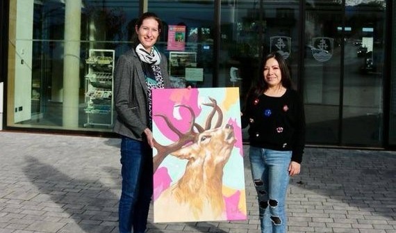 Ein Bild der Künstlerin Yaninne Cansaya durfte diese Woche die Bernauer Bürgermeisterin Irene Biebl-Daiber in Empfang nehmen. Biebl-Daiber hatte spontan beschlossen, das Bild für das Rathaus zu kaufen, nachdem sie es frisch fertiggestellt auf Instagram entdeckt hatte.