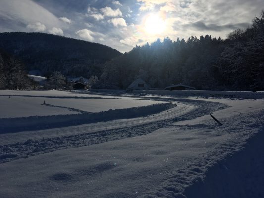 Frisch gespurt wurde auch die Loipe in Hintergschwendt. Der Einstieg ist direkt vom Parkplatz am Gschwendtner Hof möglich.