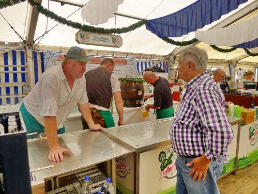 Gut 80 Fieranten hatte der Gewerbeverein von Bernau bei seinem heurigen Laurenzimarkt in Bernau zu Gast. Die Chiemseestraße sowie die Plätze um das Rathaus und Festzelt waren aufgrund des überaus schönen Spätsommerwetters den ganzen Tag über stark frequentiert. Zum Gelingen des Marktes und zum großen Angebots- und Unterhaltungs-Sortiment trugen der Gewerbeverein selbst mit einem Steckerlfisch-Stand, die Chiemsee-Nixen mit ihren Auftritten der Nachwuchs- und Erwachsenen-Garde und auch die Bernauer Gebirgsschützen mit einem eigenen Informationsstand bei. Dabei warben die Gebirgsschützen für ihr kommendes Bataillonsfest, das am Samstag, 21. Juli ab 19 Uhr mit einem Festabend und am Sonntag, 22. Juli mit dem Bataillonsfest mit Gottesdienst und Festzug gefeiert werden wird. Gerne angenommene Rast und kulinarische Stärkung war im Festzelt unweit des Marktgeschehens, dort spielte die Bernauer Blaskapelle, deren Besetzungen sich abwechselten. Die weiteren Veranstaltungen zum Bernauer Laurenzimarkt sind am heutigen Montag, 16. September der Tag der Betriebe, Vereine und Gäste ab 19 Uhr, am Mittwoch, 18. September sind die „Ursprung-Buam“ zu Gast und am Samstag/Sonntag ist dann das Bataillonsfest.