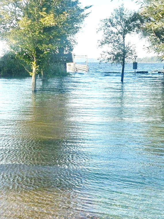 “Aufgrund des hohen Wasserstandes des Chiemsees muss der Seniorenausflug nochmals um eine Woche verschoben werden. Derzeit ist nicht einmal der Dampfersteg zugänglich.