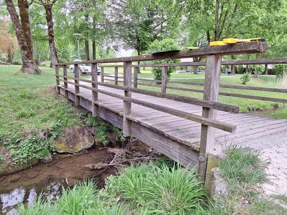 Die Gemeinde Bernau a. Chiemsee informiert: Die Brücke am Minigolfplatz wies Fäulnisstellen auf und musste erneuert werden.