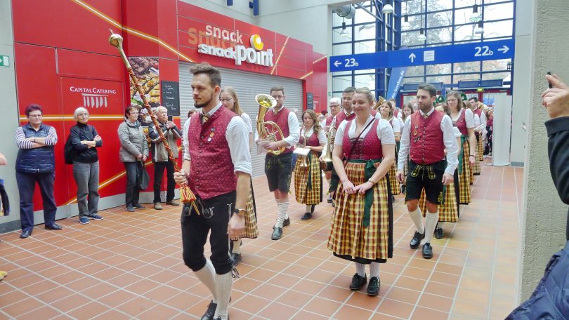 Foto: Hötzelsperger – Burgkirchener Musikanten beim Einzug in die Bayernhalle