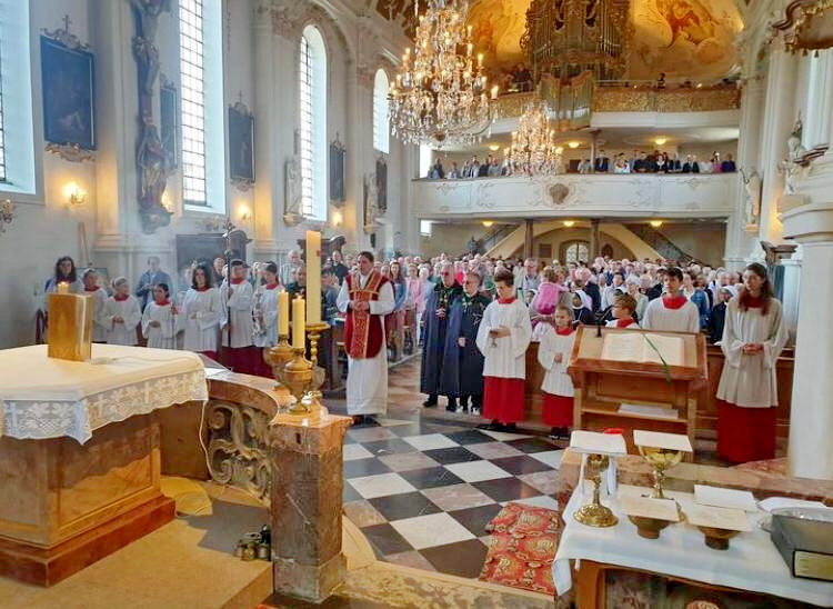 So war es auch heuer mit der Krönungsmesse von Wolfgang Amadeus Mozart unter der Gesamtleitung von Kirchenmusiker Bartholomäus Prankl. Erstmalig und somit ungewöhnlich war es, dass beim Einzug des großen liturgischen Dienstes drei in schwarzen Gewändern gekleidete Mitglieder vom „Ritter des Heiligen Lazarus zu Jerusalem“ mit einmarschierten. Pfarrer Gottfried Grengel hieß die Ordensbrüder aus dem Priorat in Deutschland e.V., die sich als Samariter der Nächstenliebe verstehen, willkommen.