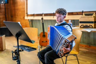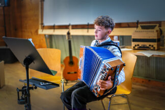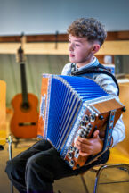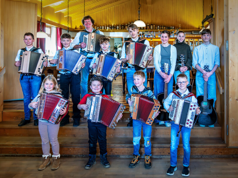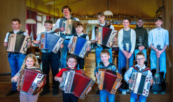 Alle Schüler hatten sauber aufgespielt und erhielten den verdienten Applaus vom Publikum. Stimmung kam gleich am Anfang auf, als Jakob Voggenauer die „Hey Mann Polka“ von den Zillertaler Schürzenjägern schwungvoll und sauber zum Besten gab. Basti Eizenhammer begeisterte das Publikum unter anderem mit dem bekannten Stück von Herbert Pixner „Vierteljahrhundert Dreiviertler“ und dem Stück „SCHEE!“ von der gleichnamigen CD von Resch, sehr zur Freude des Komponisten. Eine der jüngsten Musikantinnen war Matilda Wimmer (8 Jahre), die nach nur 3monatigem Unterricht fehlerfrei und gelassen aufspielte. Extra für das Konzert formierte sich eine kleine „Band“ mit Elisa Kettelberger, Franziska Nickl und Bastian Kindermann, alle an der Gitarre mit Gesang bei Bob Dylan’s Klassiker „Knockin‘ on heaven’s door“, begleitet vom Helli. Franzi Nickl (14 Jahre) war auch noch ganz alleine zu hören mit „Wonderful life“ aus den 80er Jahren, sehr gefühlvoll gespielt und gesungen!