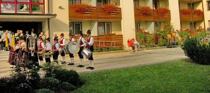 Foto: Hötzelsperger – Bildunterschrift: Caritas Altenheim St. Josef in Prien mit Spielmannszug der Priener Gebirgsschützen